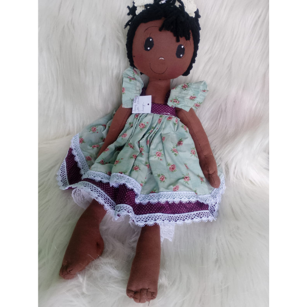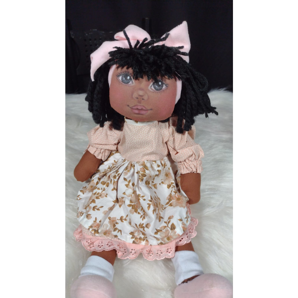 A Boneca Soraya é uma boneca doce e delicada, feita com tecido tricoline e enchimento antialérgico.